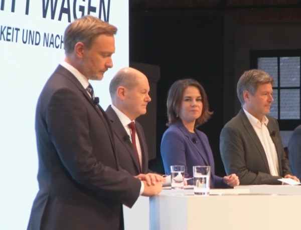 SPD, Groenen en FDP presenteren regeerakkoordVerkiezingen 2021Corona terugdringen en een klimaatbeleid dat onderdeel wordt van alle beleidsterreinen. Dat zien de coalitiepartijen als hun belangrijkste taken, zeiden ze bij de presentatie van hun regeerakkoord. Lees verder |