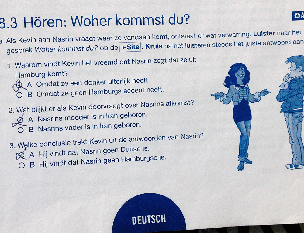 Woher kommst du?Column: Voor de klasEen luisteroefening zorgt voor ophef in de multiculturele klas van lerares Duits Iduna Paalman, die sinds kort voor de klas staat in Amsterdam. Lees verder |